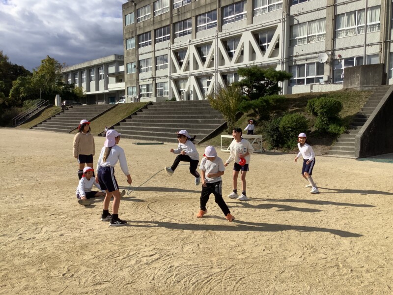 11月 19 2025 20251119今日の笠原小 今日の朝の活動終了後です。 今日もありがとう! 運動場では児童玄関に向かう前に思い思いの過ごし方をしています。 続いては昼休みの様子です。 どの学級も8の字跳びに仲間とともに挑戦をしている笠原小学校です。