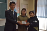 1月 20 2026 赤い羽根共同募金 児童会が毎週水曜日のあいさつ運動のときに、アルミ缶回収をよびかけ、全校で回収したアルミ缶の収益の一部と、職員玄関に設置していた募金箱にたまった募金も一緒にして赤い羽根共同募金として、児童会が担当の方にお渡ししました。 アルミ缶回収、募金箱への募金にご協力いただきありがとうございました。