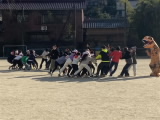 12月9日(火)PTA主催の「昼休み 子どもと遊ぼうの会」で、今回は4~6年生が恐竜と「つなとり」を行いました。