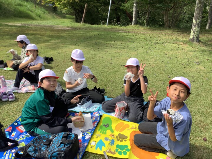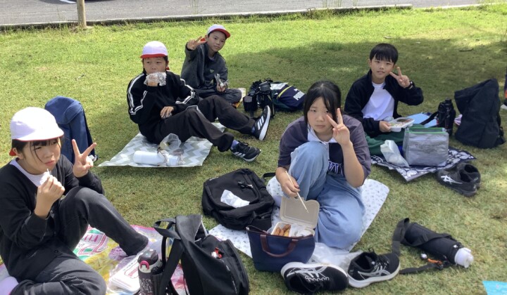 オリエンテーリングが終了しました。仲間と協力してチェックポイントを目指し、少し迷い、苦戦したチームもあったようですが、全員揃って時間内に無事ゴールしました。たくさん歩いたらお腹ぺこぺこ。おまちかねのお弁当をいただきました!おいしくて、元気になりますね。朝早くから準備してもらったおうちの方に感謝です!