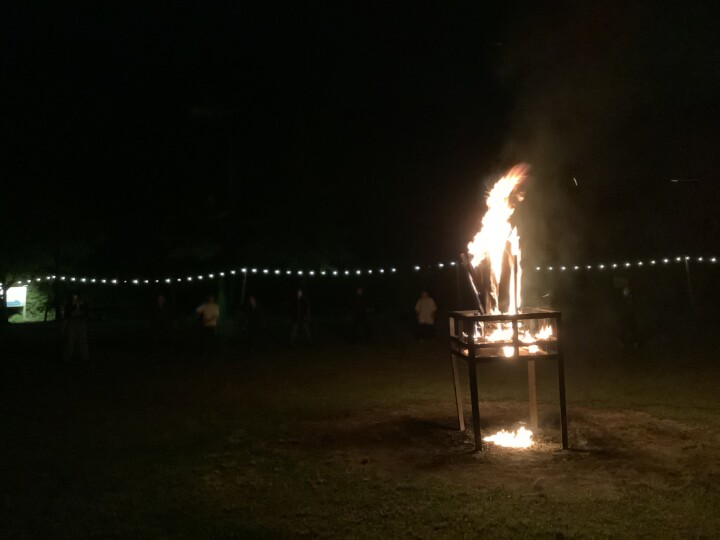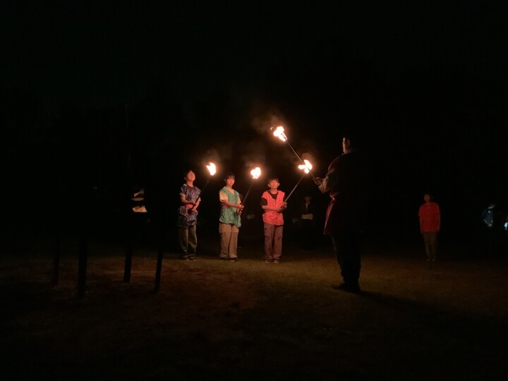 1日目ラストの活動はキャンプファイヤー。友情の火、勇気の火、希望の火を火の神からもらい、着火。マイムマイム、ソーラン節、ジンギスカン、ジェンガをみんなで踊り狂いました。学校での練習の成果を思い切り発揮し、火を前に全力で楽しむことができました。アンコールが鳴り止みませんでした。一日中仲間と協力しあい挑戦し、感じ、学ぶことができました。忘れられない思い出がまた一つ増えましたね!明日も気合いを入れて頑張ります!