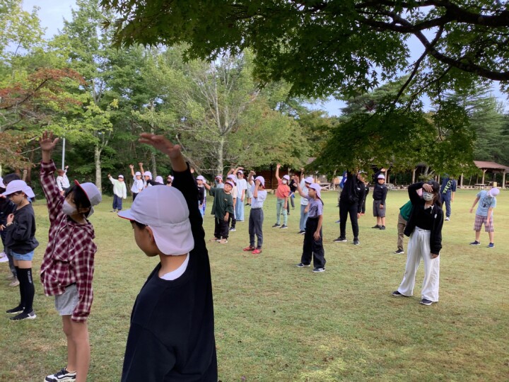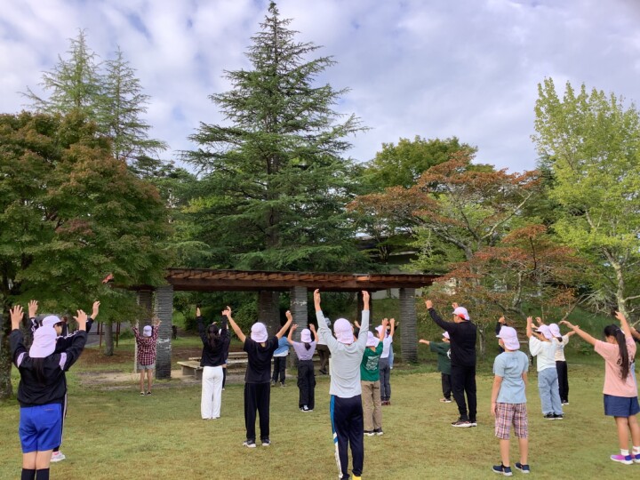おはようございます!元気に朝の挨拶をして、ラジオ体操をしました。昨日はよく眠れたでしょうか?とてもいい天気に恵まれ、ラジオ体操。朝から体を動かすと気持ちいいです!今日も一日がんばるぞー!