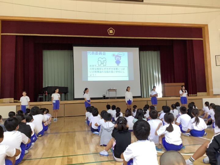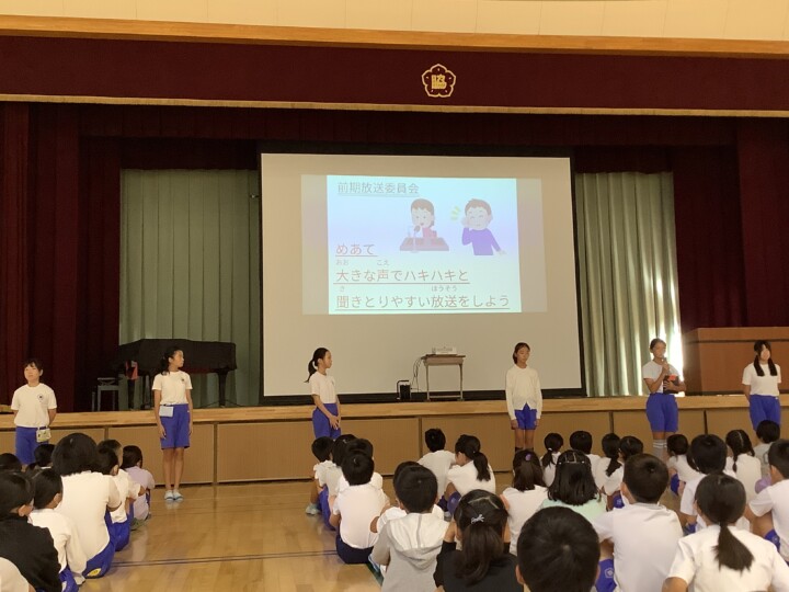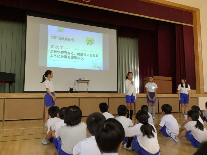 朝、前期委員会のふりかえり集会がありました。前期の委員会活動では、”みんなのしあわせのために”考えためあて向かって当番活動やキャンペーンに取り組みました。5、6年生の想いや活動のおかげで、脇小に元気なあいさつとポカポカ言葉が広がり、気持ちのいい朝の始まりや楽しい給食時間を過ごすことができました。また、みんながけがや病気なく過ごすためのよびかけ、安全で美しくすごしやすい環境を作ってくれました。さらに、休み時間に読書を楽しみ、外で元気に遊べるように支えてくれました。そんなおもいやりの一つ一つが実になって、全校に笑顔が溢れました。みんなが話す人の方を向いて、真剣に聴く姿勢からは、ありがとうの気持ちが伝わってきました。この成果を後期に引き継ぎ、5,6年生に応えることで、みんなだれかのために、そして思いやるあたたかさをわすれず一緒に頑張っていきましょう。