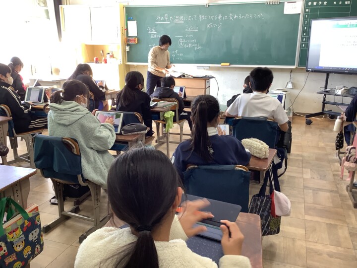 最近は、毎日元気な掛け声や、鍵盤ハーモニカ、合唱の声が廊下に響き渡っています。どの学年も脇っ子の練習や大縄、授業など一生懸命取り組んでいるようです。脇っ子の発表は当日のお楽しみに♪ということで、授業中の様子をお届けします。6年生は、自ら学ぶ姿勢が素晴らしかったです。テストでまちがえたところを振り返り、グループで問題を出し合っていました。4年生は、寒さにも負けず元気いっぱい、色を英語で発音したり、単語に含まれるアルファベットを聞く練習をしたりしていました。5年生は、それぞれで考えを深める時間。前回の理科の実験を振り返り、iPadを活用しながら考察をしていました。寒くなり、お休みや体調を崩す子が増えてきましたが、今自分たちにできることを考えて、学習に向かっています。引き続き感染対策と生活リズムを整えながら毎日元気に過ごしましょう!