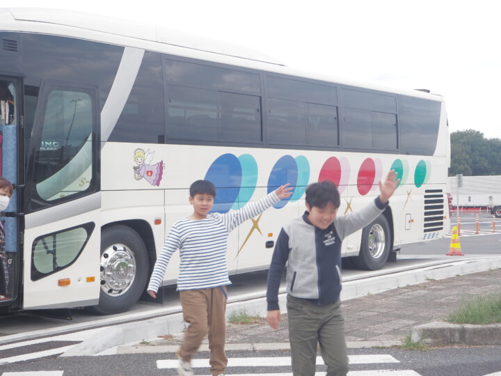 多賀SAに到着し、休憩をしました。滋賀県に入り、彦根城とまるで海のような琵琶湖も見えました。なんと雨が上がり、明るい日がさしています!てるてる坊主の効果かな?琵琶湖の心地よい風を感じながら、まだまだ先は長いですが、京都へ向かっていきます!バス内は、バスレクで大盛り上がりでした。