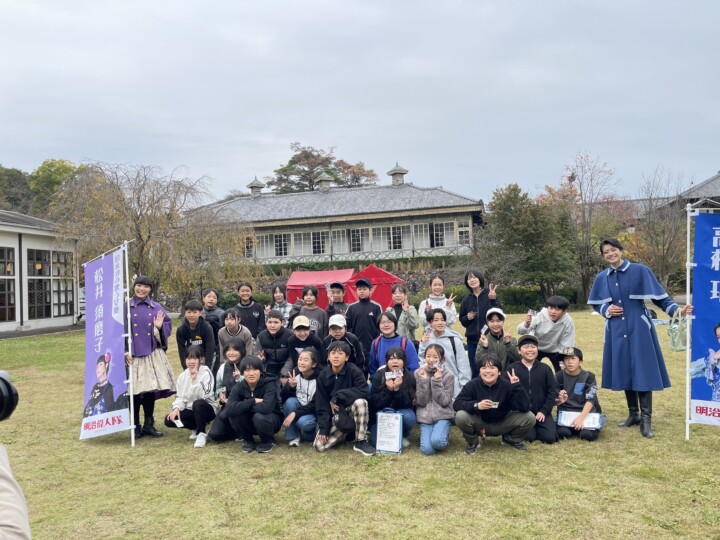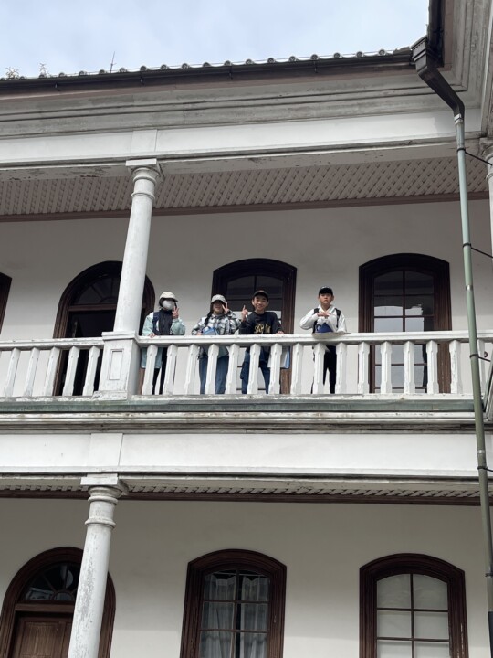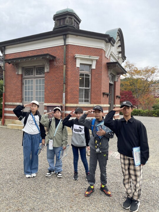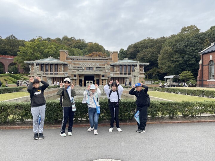 6年生が校外学習で明治村を訪れました。明治時代の様々な建物を見学し、当時の人の生活や文化について体験しながら学ぶことができました。呉羽座という歌舞伎が行われていた場所では、ガイドツアーで、舞台にあがったり、舞台下の奈落を見学したりしました。また、明治時代の監獄も体験しました。聖ザビエル天主堂では、美しいステンドグラスに魅了され、厳かで神聖な空間を感じることができました。まるで明治にタイムスリップしたかのような一日でした。「楽しくても思いやりとマナーを忘れず、明治について仲間と学んで最高の校外学習にしよう!」というめあてのもと、グループで、全員が楽しく学べるよう、思いやりとマナーを忘れず、時計を見ながら、計画的に活動できました!