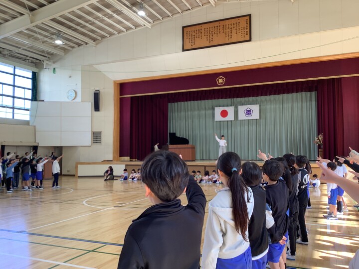 今日の朝は全校で、「1年生をむかえる会」を行いました。6年生が手作りのメダルのペンダントをかけてあげると、とても嬉しそうにしていました。緊張する1年生に声をかけたり、手を優しく握って、一緒に入場する6年生の姿は、頼もしく一段と成長を感じた瞬間でもありました。全校で1年生に送った校歌のプレゼントは、あ!の指さしもばしっと揃っていて、元気いっぱいでとても素晴らしかったです!お手本にな姿を1年生に見せることができました。そして、1年生も、大きな声でお兄さん、お姉さんにありがとう!とたくさんお礼を言うことができました。これから始まる学校生活がより一層楽しみになりましたね!!