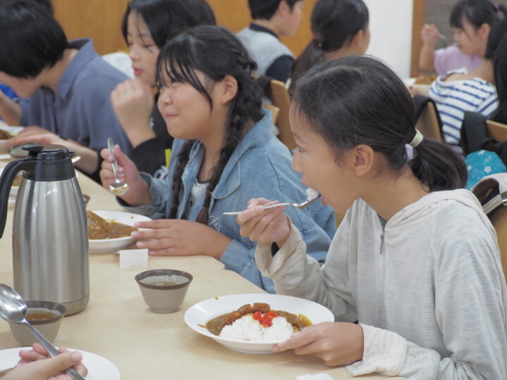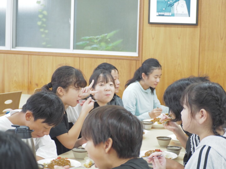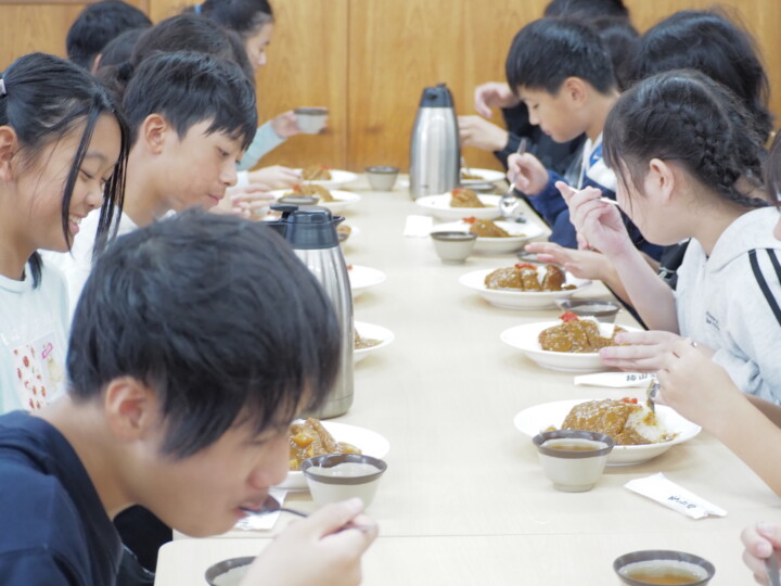 10月 16 2025 カレーはいつでもおいしい~梅山堂🍛 朝が早かったからでしょうか?先ほどから「おなかがすいた」との声が。梅山堂でお待ちかねのお昼ごはんです。1日目最初のもぐもぐタイムのメニューは、カツカレーです。あつあつでおいしくいただきます!