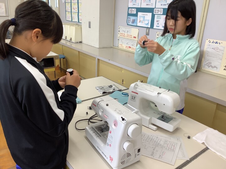 5年生の家庭科です。ランチョンマットが完成したので、ミシンのテストに向けて全力練習中です。上糸を通すのはだいぶ慣れてきましたね。「ここが1番で、ここにかければ完成だね!」「何も見なくてもできた!」と手際がいいです。ただ、下糸はちょっとコツがいるようで、なかなか輪っかが顔を出してくれない子がちらほら。困った時は、先生に質問したり、仲間に助けを求めたりしながら諦めずに練習を繰り返していました。反時計回りにセットして、くるくる回し、ポイントを確認したらようやくセット完了です。雑巾を練習布にして何周も縫っていました。テスト合格目指して頑張れ〜!応援しています。