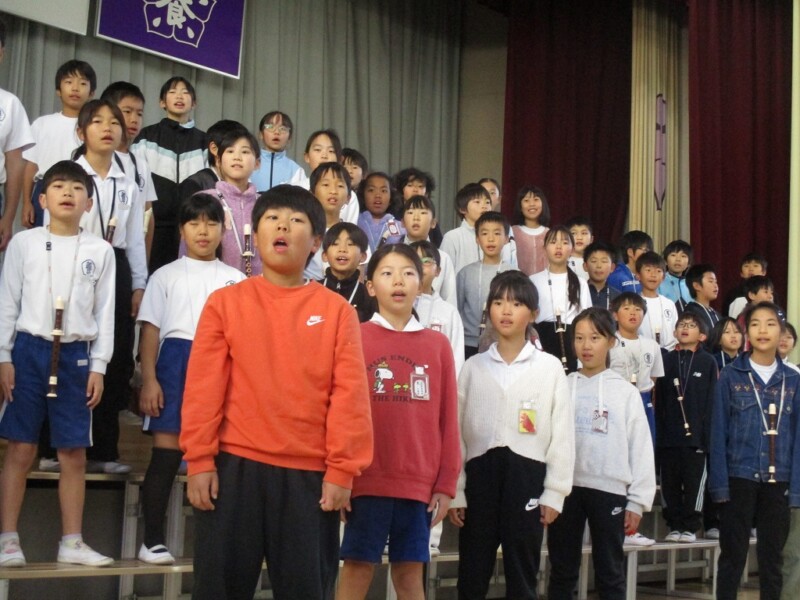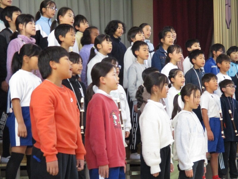 12月11日は多治見市音楽祭。そこに参加する4年生児童が、全校の前で演奏や歌声を披露しました。