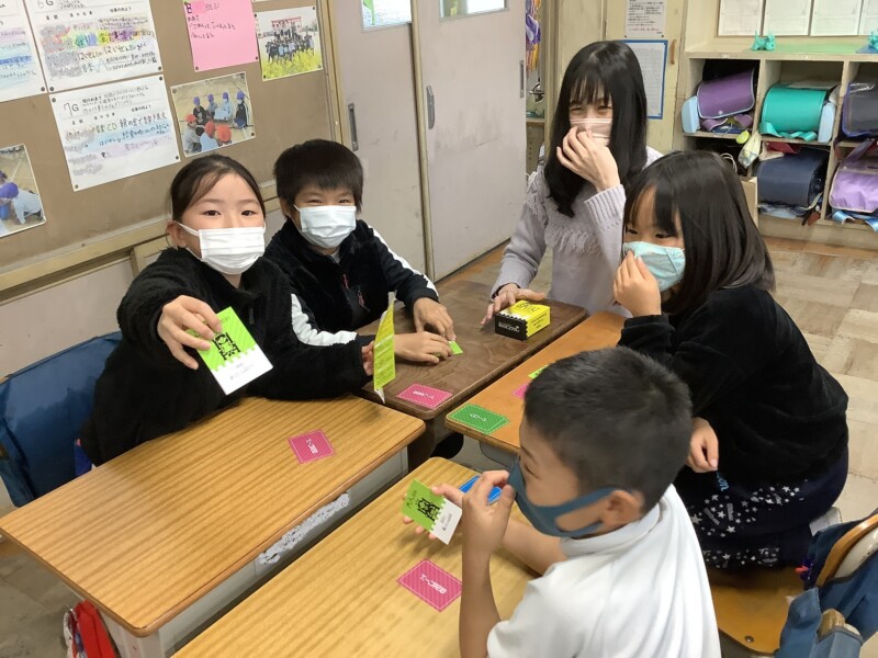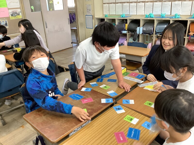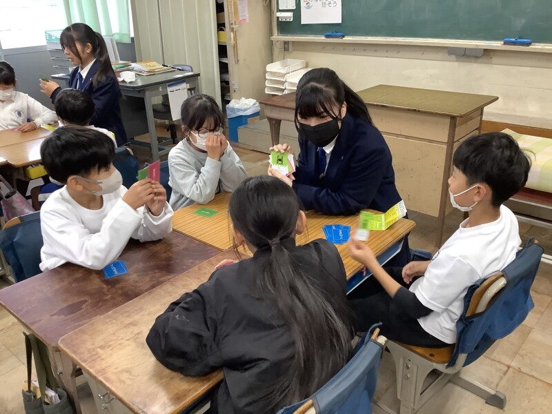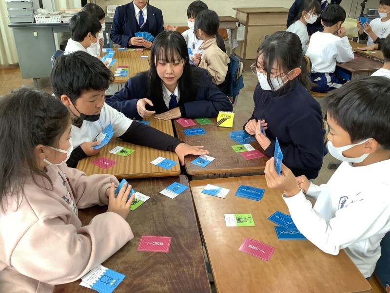 多治見高校の生徒が、小学生向けの防災学習カードを作成しました。この日は、高校生が3年生児童を相手に、カードを活用しながら授業を行ってくれました。